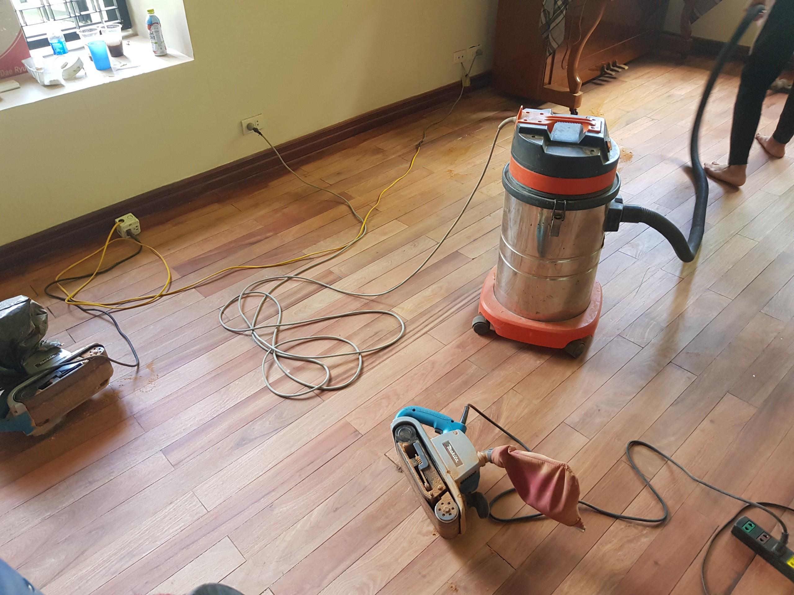 – Đối với sàn gỗ tự nhiên lâu năm cần phải mài phục hồi để sảm bảo hết các vết xước và mang lại vẻ đẹp đúng giá trị của sàn